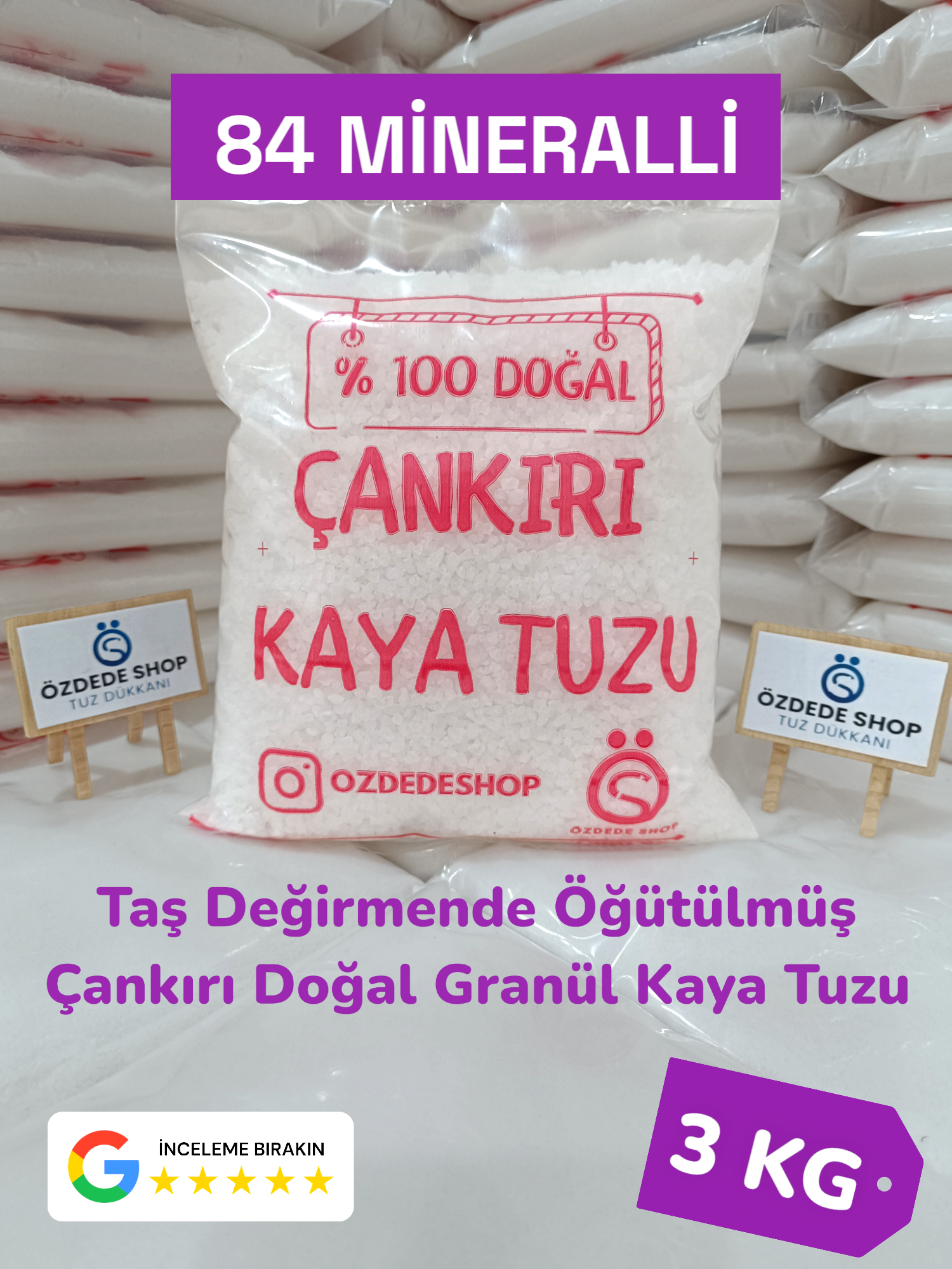 Çankırı Doğal Granül Kaya Tuzu 3 Kg Yemeklerde, Turşu ve Salamurada (Mor Etiket)